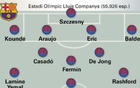巴萨vs皇家社会:莱万搭档拉什福德,佩德里、德容出战